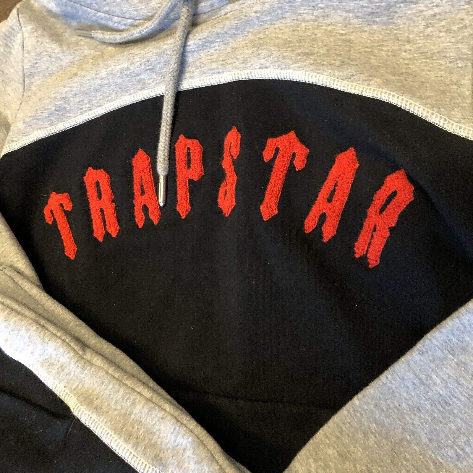 High quality custom trapstar chenille embroidery hooded tracksuit black/orange hoodie set tracksuits sweat suit men's sets